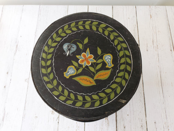 Large Antique Sugar Bucket/ Wood/ Hand Painted/ Tole Paint/ Pennsylvania Dutch/ Folk Ark/ Wood Firkin/